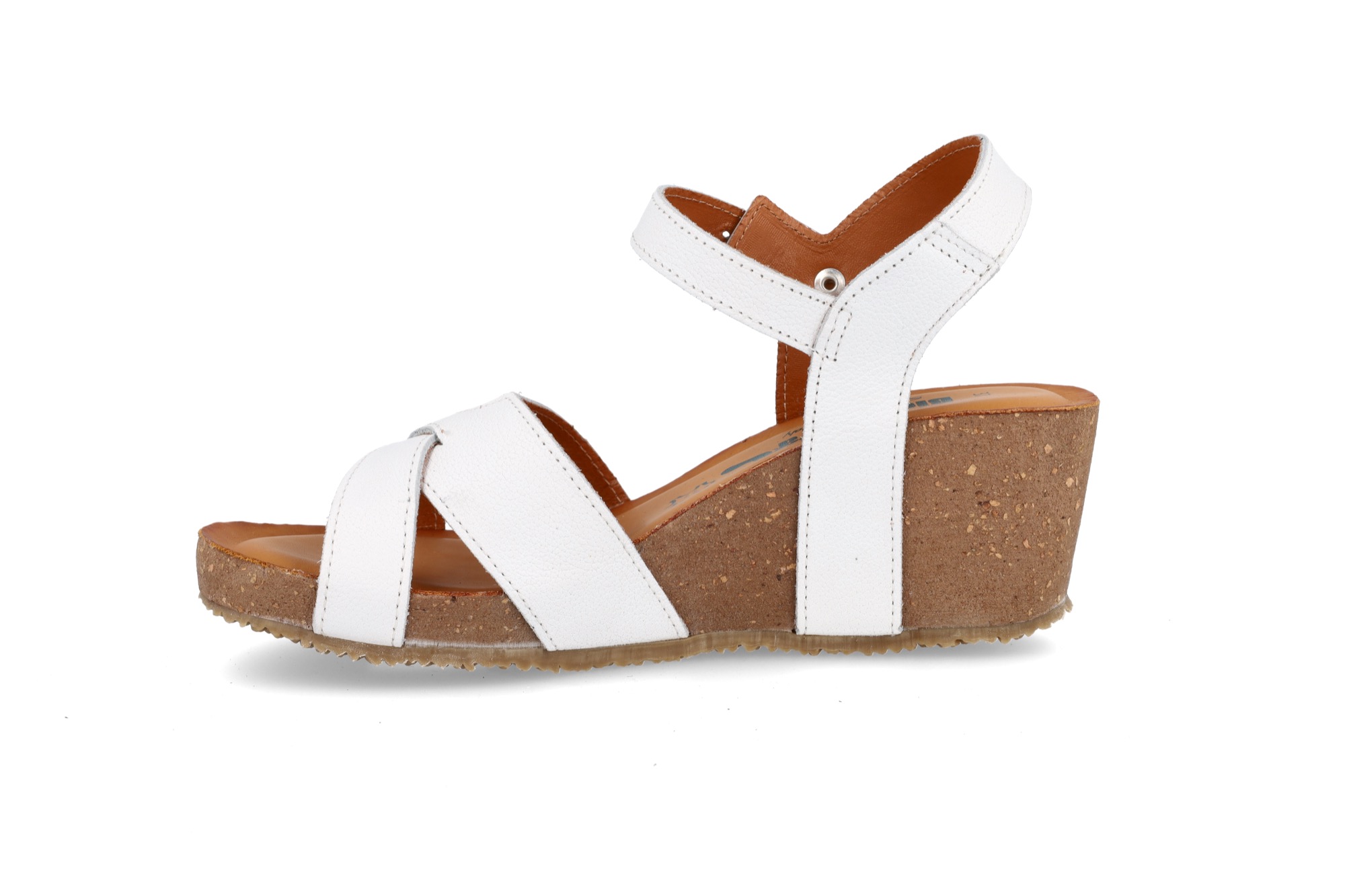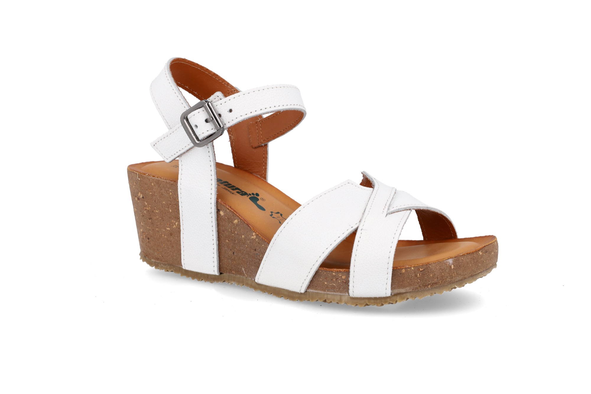 La tomaia è intrecciata in vera pelle e grazie al cinturino intorno alla caviglia, è perfettamente adattabile ad ogni tipologia di piede.