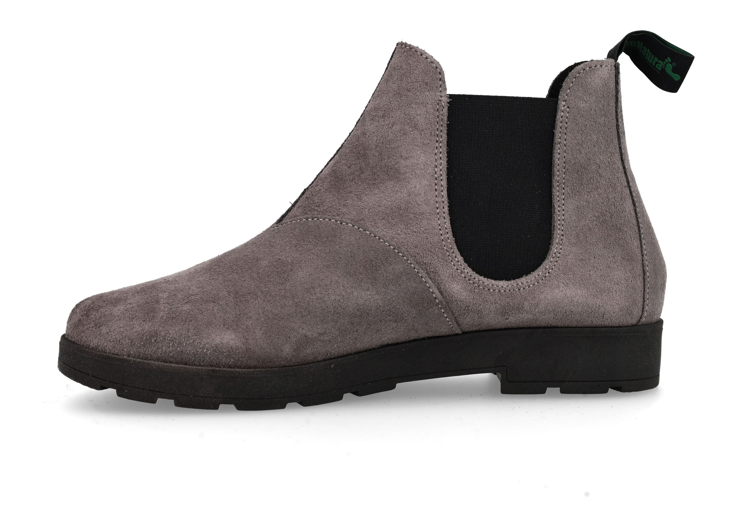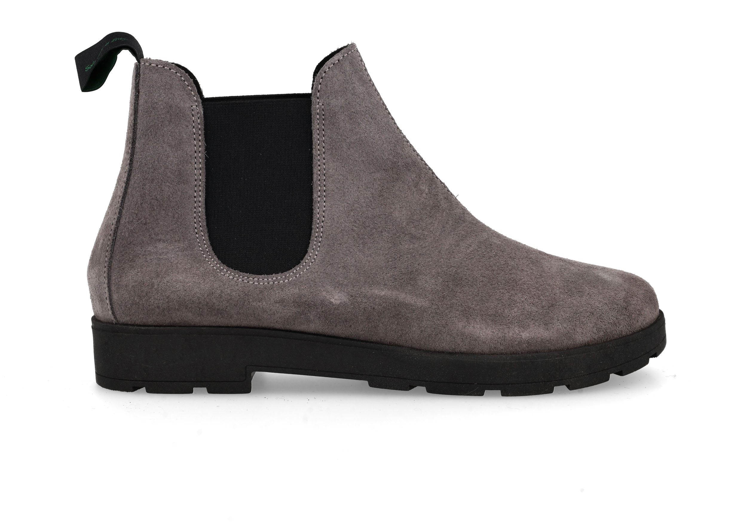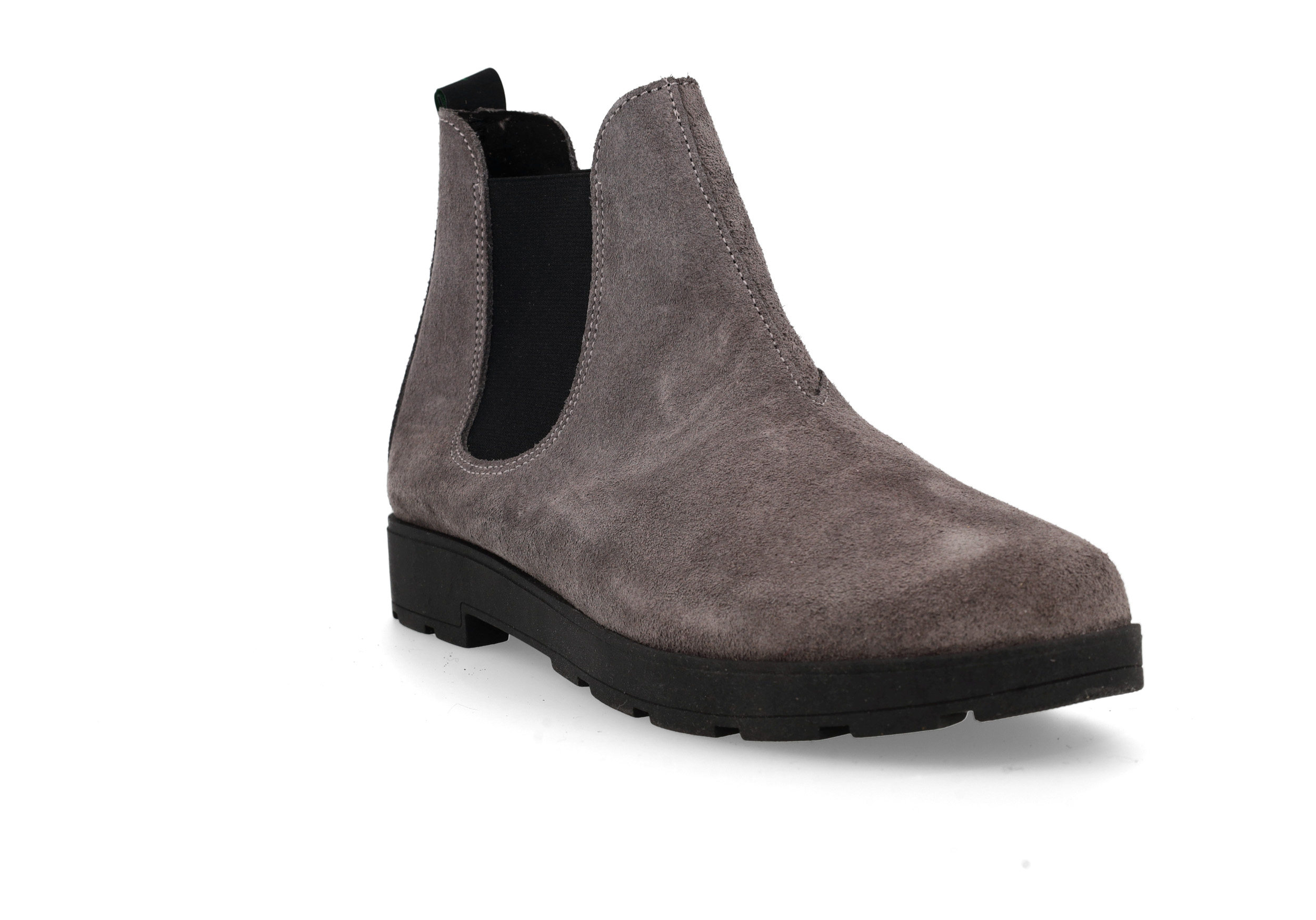 Stivaletto con elastico, tomaia in pelle scamosciata, soletto in pelle, suola flessibile antiscivolo, tutti gli accessori sono Nikel Free. Altezza 25 mm